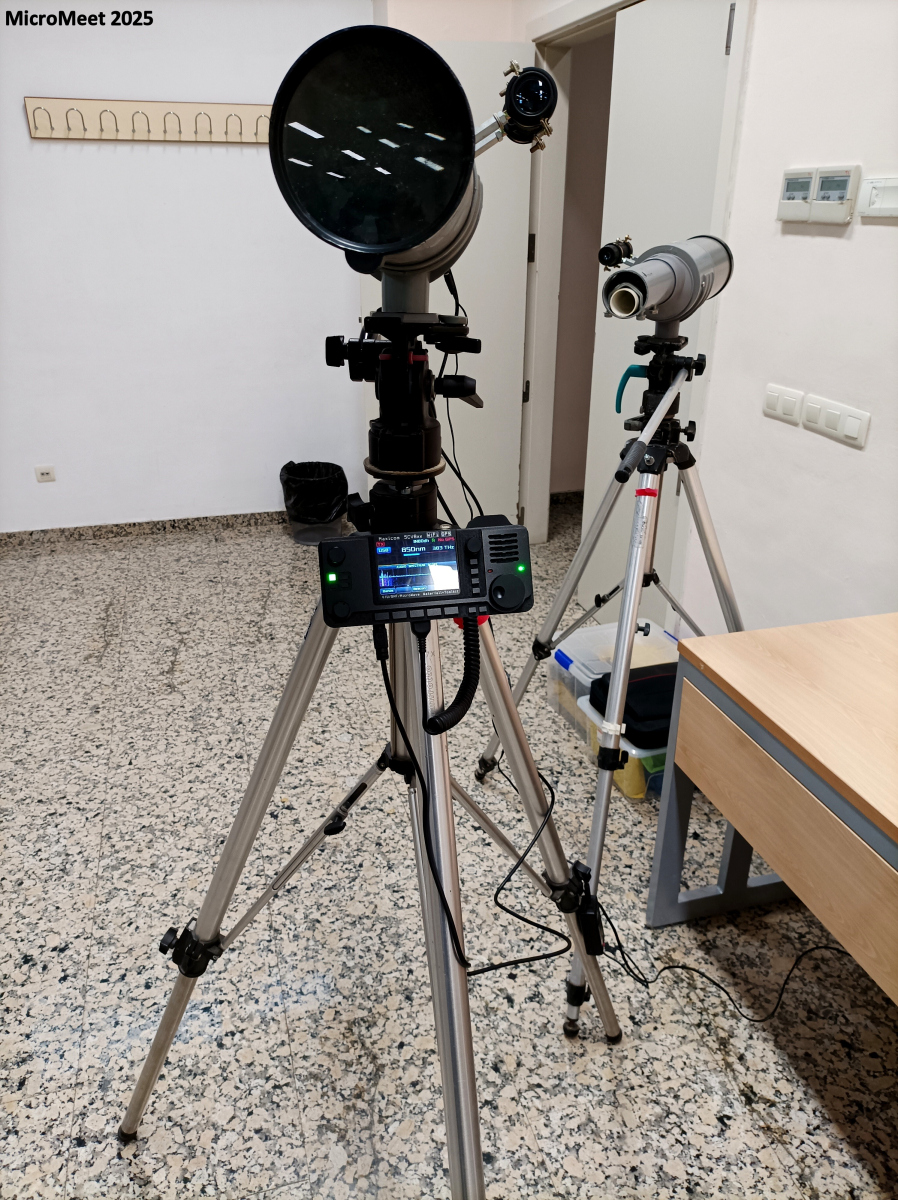La actividad arrancó el viernes con una visita técnica a la Estación de la Red de Espacio Lejano de la ESA en Cebreros (Ávila), una oportunidad única para conocer de primera mano el funcionamiento de esta instalación clave para el seguimiento de misiones interplanetarias. La jornada continuó con la charla “Las nuevas telecomunicaciones espaciales para colonizar la Luna”, a cargo del Dr. V. Clarós, seguida de la presentación del proyecto ICOM SHF, y una serie de demostraciones prácticas con equipos de microondas y el modelo IC-905.